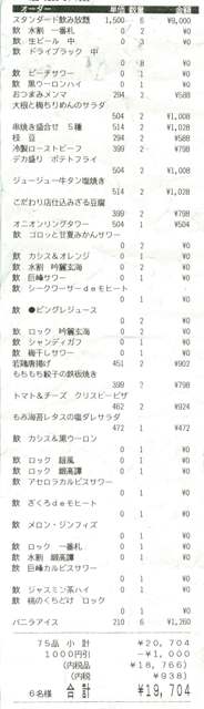 集計してみたら、生中が11杯、焼酎が10杯、サワー・カクテル類が18杯で合計39杯のアルコール類。