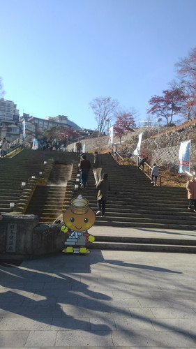 石段の上にある伊香保神社にみんなで参拝(私だけ2回w)したわけですが、70代の高齢&年齢からくる障害(足腰)がある人は、パスしたくらいきつい石段。