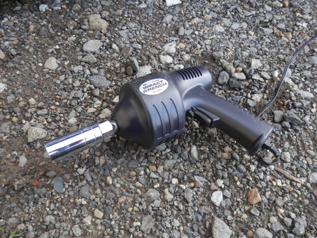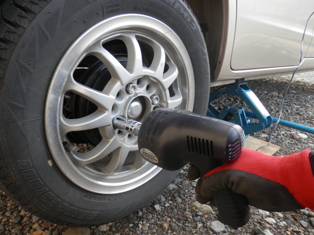 インパクトレンチでガンガンラグナットを回して、スタッドレスタイヤを外します。