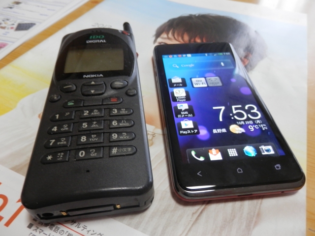 並べてみると、20年前の携帯と、長さは変らない(笑)
