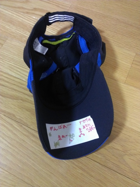 そんな中、おととしの初レースから、ずーっと使い続けているランニングキャップに目が行きます。