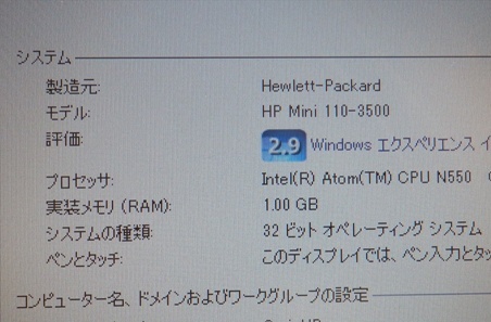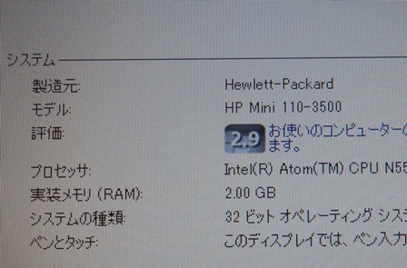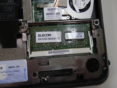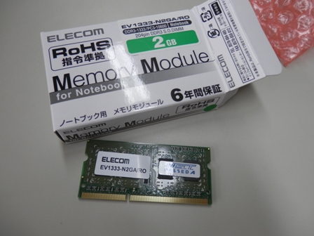 ちなみにメーカー公表上は、1GBまでしかメモリは積めません・・・ってことですが、ウィンドウズ7の32ビット機なら2GBまでは積めるはずってことで、ネットで購入。