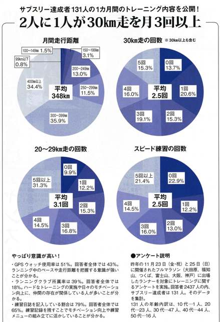 そんな中、昨年のフルマラソンの大会でサブスリー達成者にアンケートを実施し、練習内容を集計した表が掲載されてました。