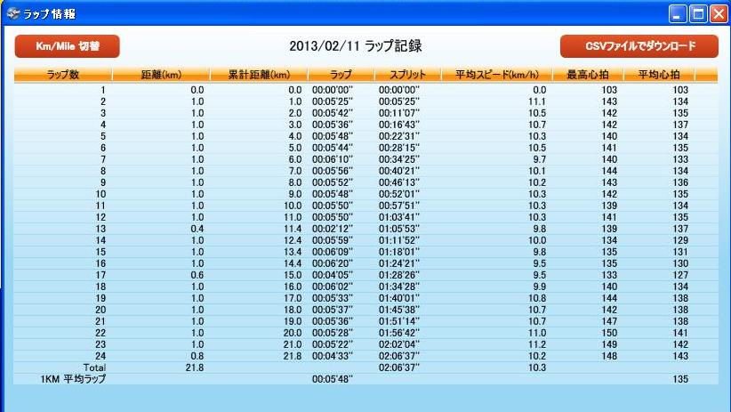 約21.8kmを走るのに要した時間は、まさかの2時間6分。