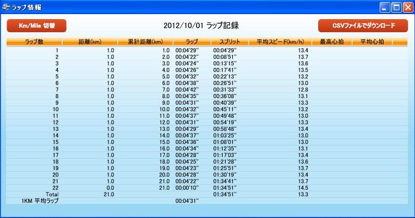その時も、やっぱりハーフ走をやってるんですが、この時のタイムは・・・