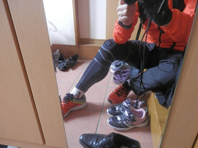 500mほど行ったところで、自宅に引き返し、サポーターをつけてリスタートしようとしたところの写真が上のこれです。