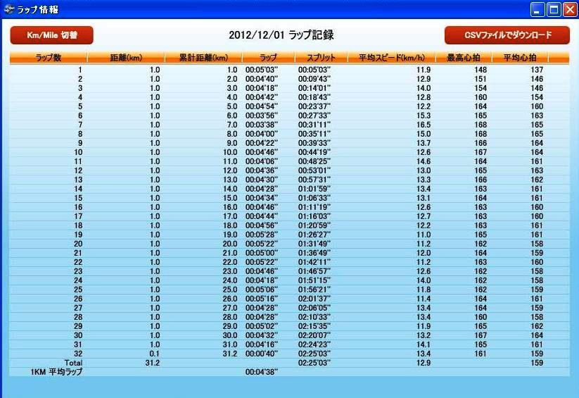 ペースが予定より、ほんのわずかだけ早かった分、距離はちょっとだけおまけして31.14kmを走破しました。