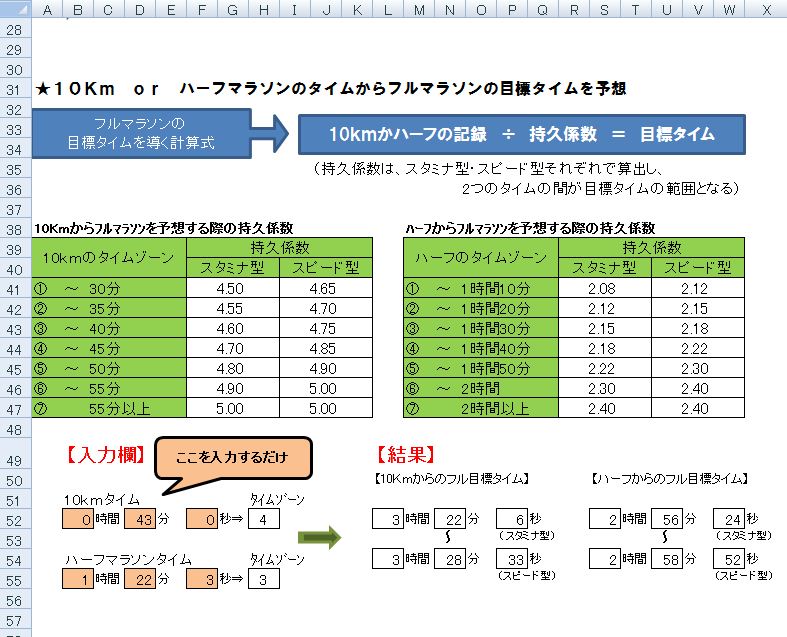 持久係数から計算すると、2時間56分24秒~58分52秒の間ということになるそうです。