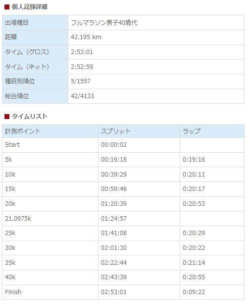 結局フルの自己ベスト兼シーズンベストは、2時間52分00秒で終わりました。