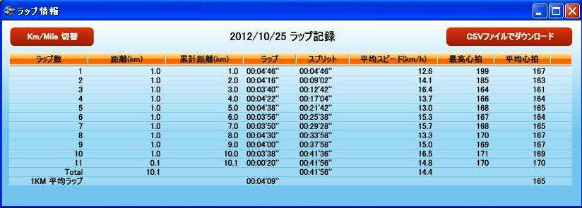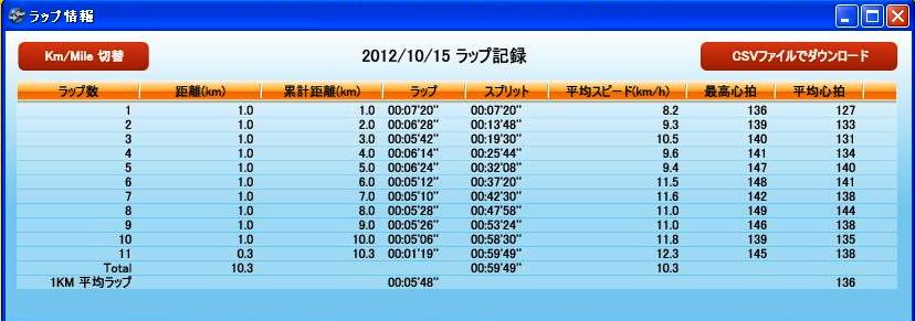 ちなみにレース直前週にJogで同じコースを走った時のデータは下の通り・・・