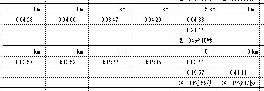 10km41分11秒 単純キロ平均で4分07秒でした。