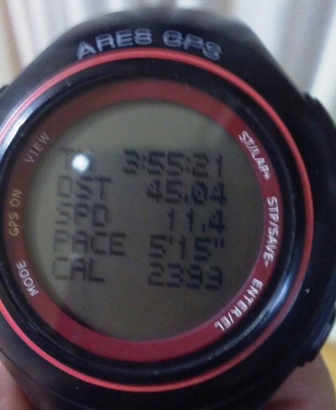 初めての4時間走は、45kmの距離で幕を閉じました。