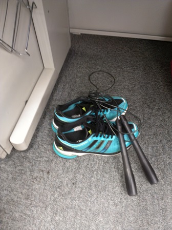 机の下にシューズと縄跳びをこっそり隠し(←いや、モロバレw)、飛ぶのはズバリ