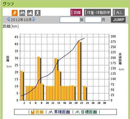 29日の土曜日が走っていないのと最終日の30日の日曜日が21kmで終わっているのは、ハーフマラソンの大会があった為です。