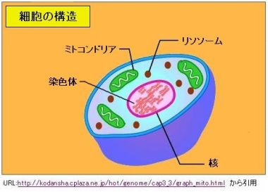 さて、このミトコンドリア・・・中学の理科でちょっとだけ習ったかすかな記憶があるんですが、当時は細胞の構造で、細胞内にある「これがミトコンドリアですよ」といった、単なる名称を覚えるだけのものだったような気がします。