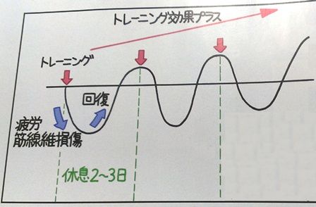 で、ちょっと横道にそれましたが(笑)、つまり人間もトレーニングで肉体がボロボロになった後、休養により疲労から回復すると運動能力が以前よりも上昇するという仕組みがあって、それを「超回復」と呼んでいるというわけです。