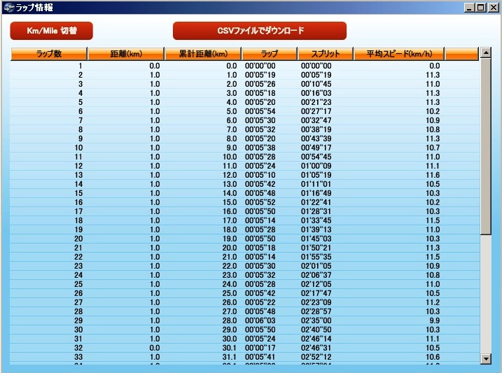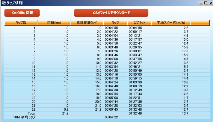 一番遅いところ(急な上り坂)で、キロ5分16秒です