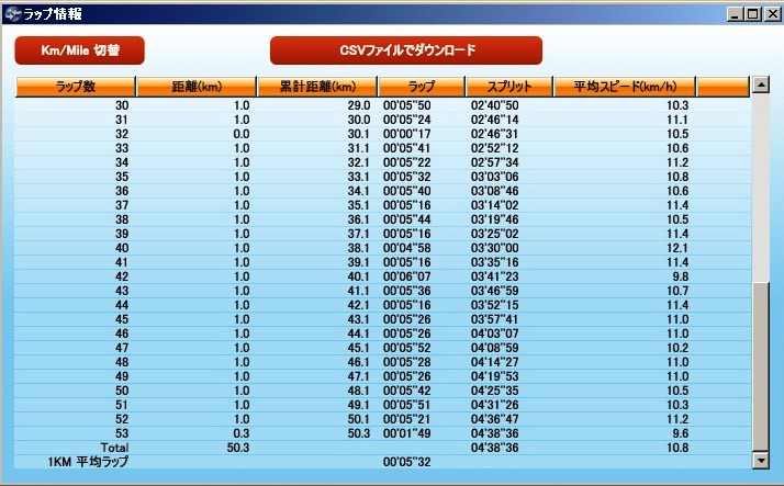 こちらは、ラップタイムは関係ないので、キロ5分~6分の間で気持ちよく走り、50km走っておこうかな?って感じで走ってみました。