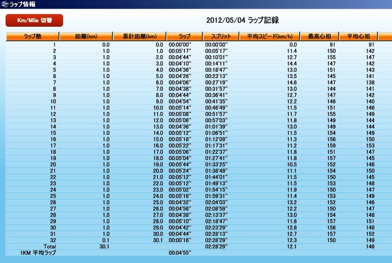 本日のラン 30.05Km 2時間28分29秒