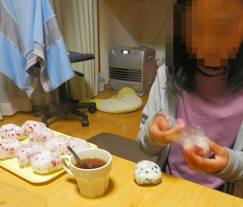 おにぎり作って、朝食の準備をお手伝い。