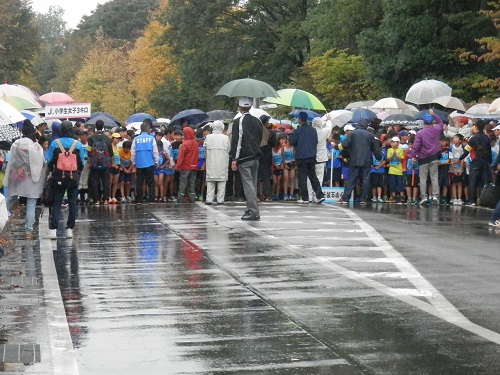 雨の中のスタート直前