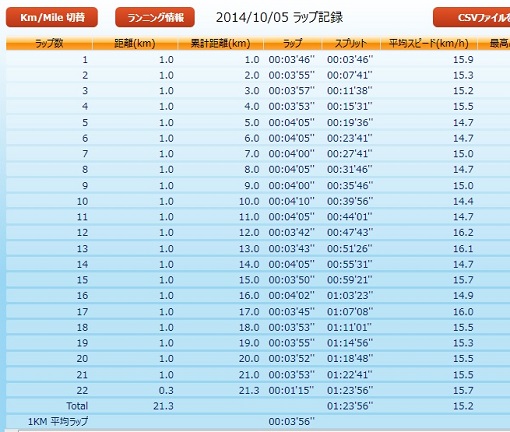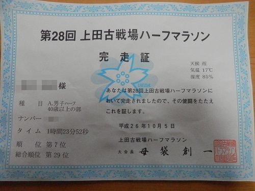 本日のラン 上田古戦場マラソン 1時間23分52秒