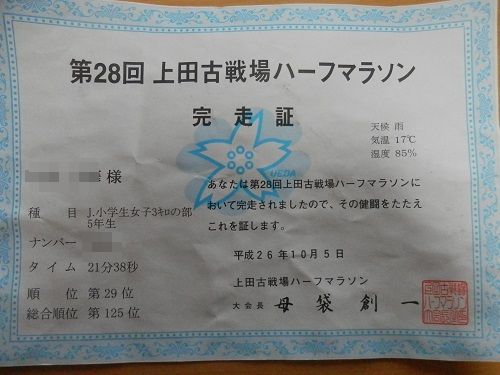 今回、私の方がスタートが先だったので、娘のゴールは見れませんでしたが、興奮気味に娘が自分の結果を言ってきたので、娘も満足のいく結果だったと思います。