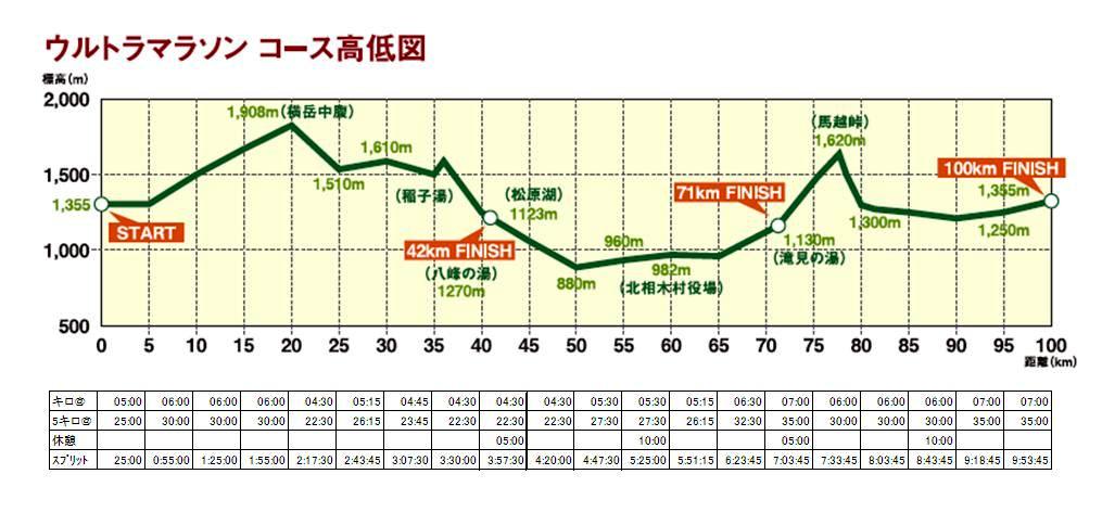 本日は、3週間後に控えた「野辺山100kmウルトラマラソン」の想定ラップを考えてみました。