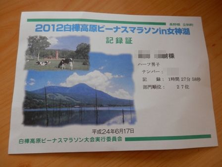 結果をみると、まさかの90分切りで1時間27分58秒 Σ(゚д゚) エッ!?