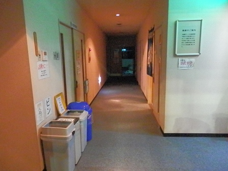 こんな感じの通路の奥にある大広間に50人分くらいの寝具がすらっと並んでるだけの雑魚寝部屋。