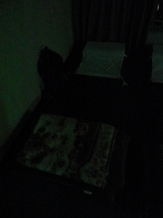 さすがにもう寝てる人がたくさんいるので、フラッシュたいて写真を撮るわけにもいきませんから、かすかな明かりを頼りに撮ってみたw