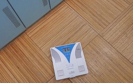 恒例の体重測定ww←こんなところにも自宅から持ってきたw