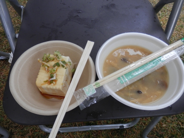 一方のお豆腐は、確か例年は冷ややっこだったと思いますが、今年はこの寒さなのでちょっとだけ温めてありました。