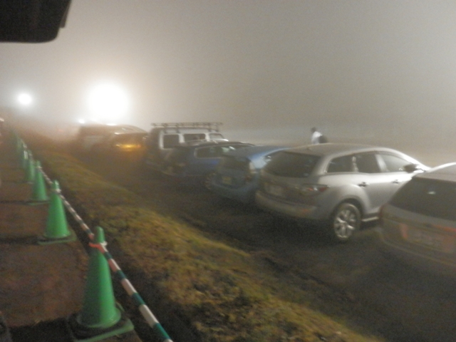 深夜2時頃到着した駐車場は霧に巻かれ、少し肌寒い・・・