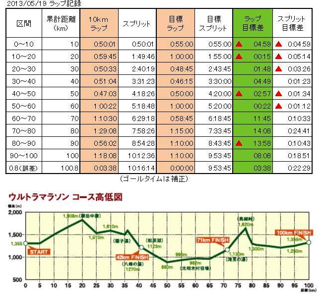 尚、途中のエイドで、お汁粉食ったり、蕎麦食ったり、食ったもん出したり(笑)している最中も、時計は止まりませんから、妙に長いラップタイムのポイントもあるので、1km毎のタイムは場所によっては参考程度でしょうか。