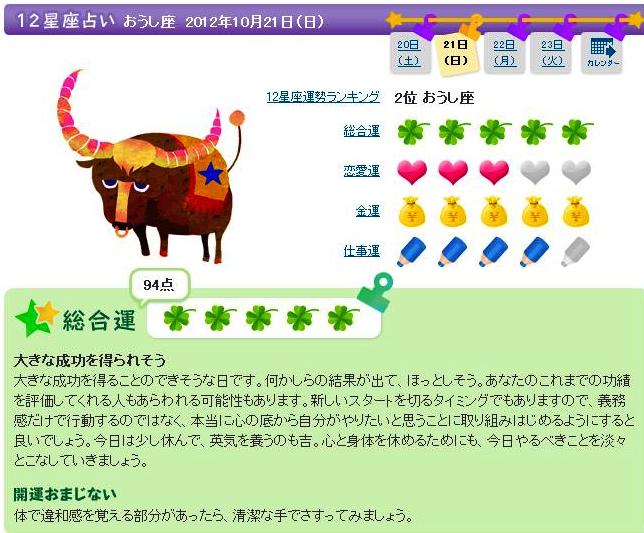 軽く余裕があるので、ブログチェックをしながら、Yahoo占いなんかを除いて見ますと・・・・