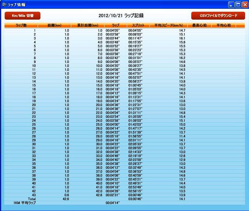 何とか、この区間も4分前半から4分30秒の間でまとめきり、ほぼ当初の予定通りに来ました。