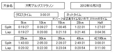 ちなみに、前回のフルマラソンの「長野マラソン」でも、21kmの通過タイムはほぼおんなじでしたが、30km以降で、脚はツルし、心臓は口から出そうになるしで、結局グロスで3時間9分。ネットでも3時間7分と言う結果に終わってしまいました。
