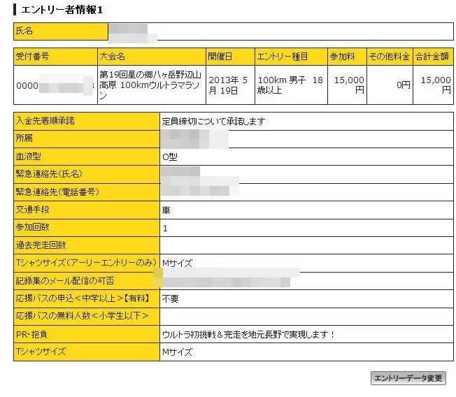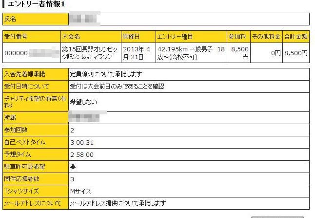 エントリー開始直後の10時4分にエントリー画面に接続され、落ち着いてエントリー情報入力・・・・・・・