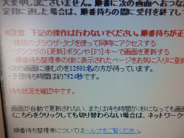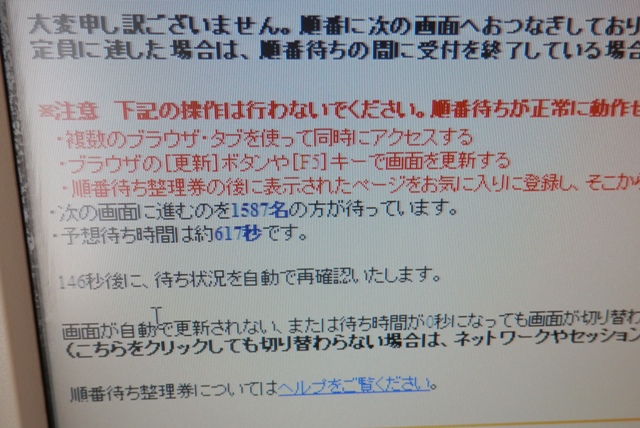 アクセスは既に1578人待ちで、接続に10分待ちの状況です。