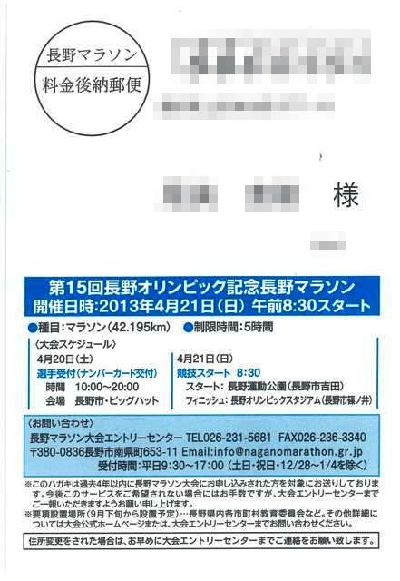 11月4日開催の諏訪湖マラソンの案内状がもう届いちゃいました。