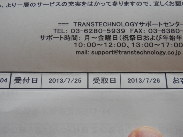 でもって、さっそくサポートセンターに修理依頼&修理品発送。