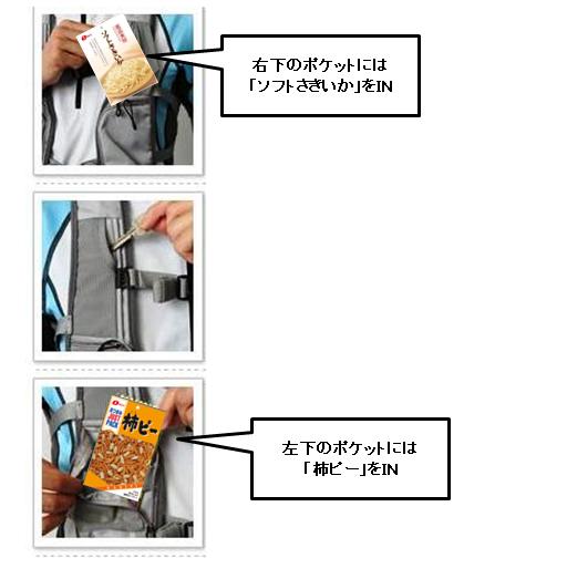 炎天下の中走るので、生ものはアウトなんで、「裂きイカ」や「柿ピー」とかの「乾きもの」系がベストでしょうねww