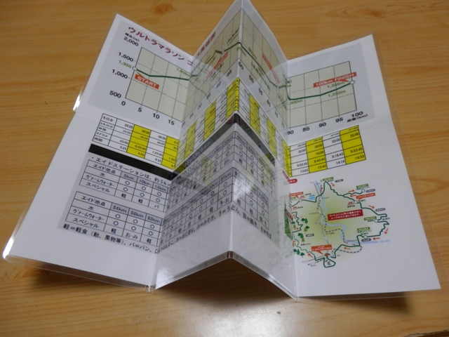 ウルトラマラソンの関係のブログを読み漁ったら、ラミネート加工したラップ表を持って行った人の話しがあって、早速パクリました(笑)