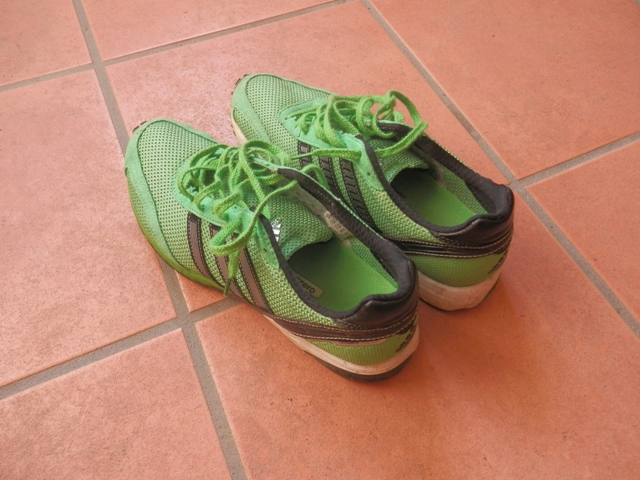 グリーンのジャパン、私がフルでベストを出した思い出のシューズです。今は、グリーンは引退。レッドオレンジのジャパンをトレランシューズと交互に使っています。