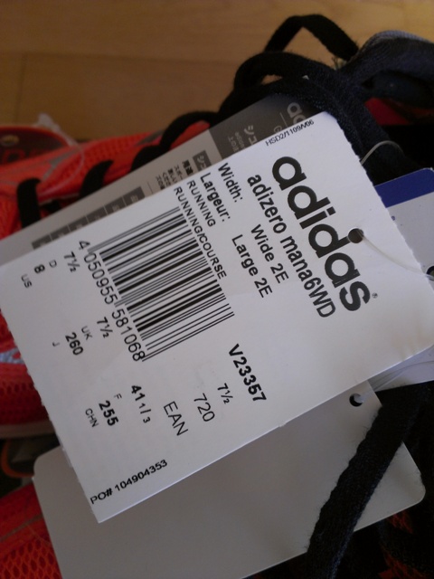 2月3日に買った 型遅れのランニングシューズ 「アディゼロ mana6」。