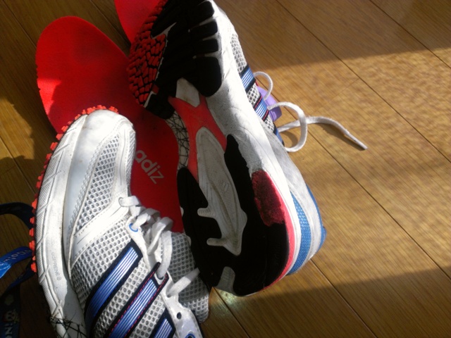 今持っている、ジャパン2はフルマラソンで2回、トレーニングで20km・・・合計100km以上履いているので、レース用としては引退してます。