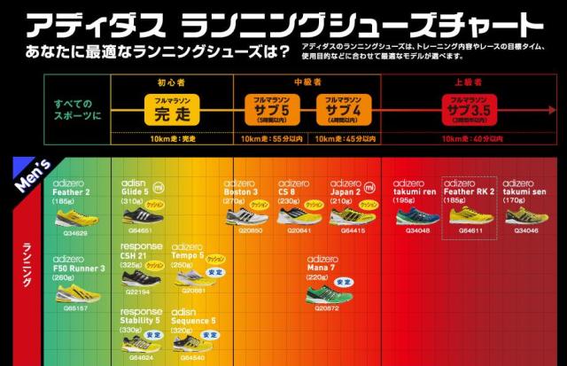 ちなみに2013年春モデルのシューズチャートはこうなってます。