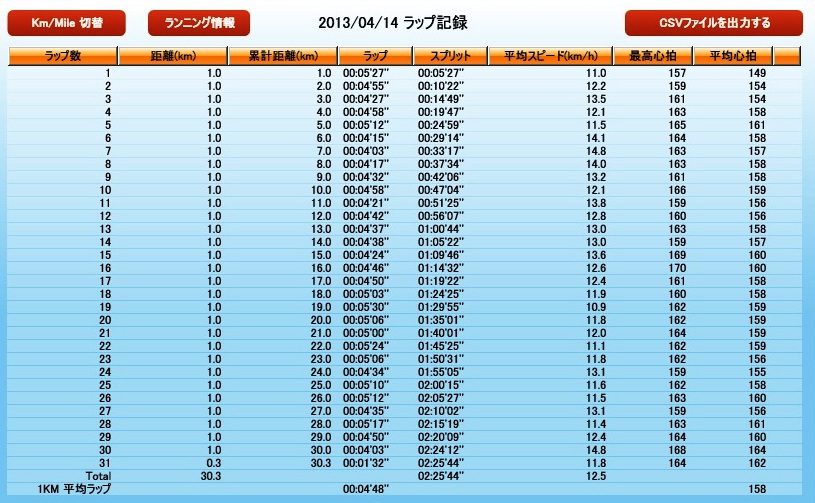 そんなこんなで、何とか目標の30kmにちょっとおまけを足して、31kmペースラン。