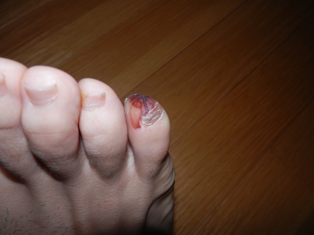 で、そのタイトさゆえに、この靴で30km走をやると必ずと言っていい程、右足小指にマメができます。